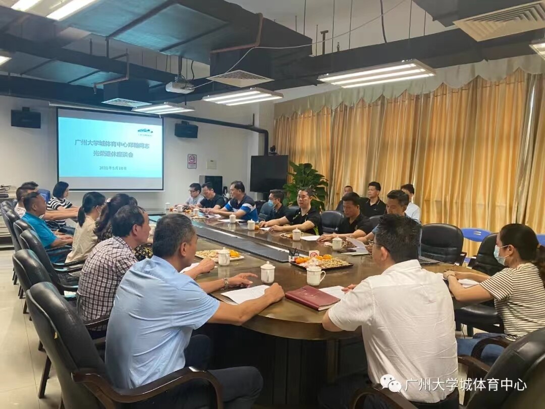 5月18日下午,广州大学城体育中心在综合楼会议室509召开了郑翰同志光荣退休座谈会,中心班子、各部室负责人及主动参与的代表近30人参加,希望和老同事再互诉心中情。