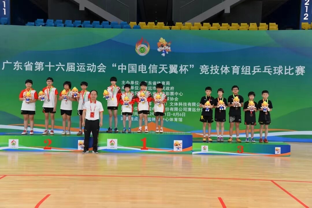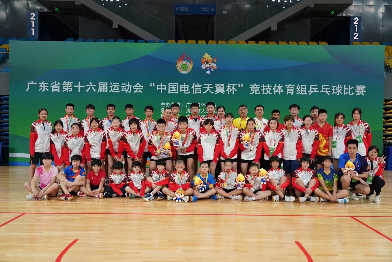 8月3日,在清远体育中心举行的广东省第十六届运动会竞技体育组乒乓球女子丁组团体赛中,广州队运动员陈韵诗、黄圣瑶和罗依诺勇夺冠军,现场比分 局长欧阳资文代表组委会向他们颁发了金牌。