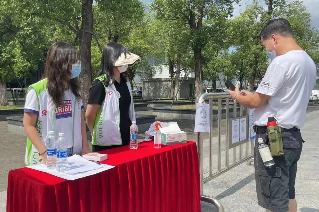 “您好,请出示核酸结果、健康码。”在活动现场两个入口处设置疫情防控卡点,志愿者们对有意进场参加活动的市民一遍遍进行检查,确保“逢人必检”,不漏“一码一人”,严格按照“48小时核酸阴性证明方可入场”的防疫要求,仔细查验每位市民的核酸结果,并进行体温测量。面对不符合核酸结果要求也想入场的市民时,志愿者们也能做到晓之以理、动之以情,礼貌地劝阻他们只停留在外围观看表演展览。“请您佩戴好口罩。”在整场活动过程中,流动服务志愿者始终高举着防疫宣传指示牌进行巡场,并时刻引导参加体验活动的市民遵守活动期间的防疫规定,全程保证活动现场防控措施到位。志愿者们充分发挥先锋模范带头作用,用实际行动构筑活动现场疫情防控堡垒,把防疫防控工作贯通起来,为保障活动的顺利举办筑牢“坚实屏障”。