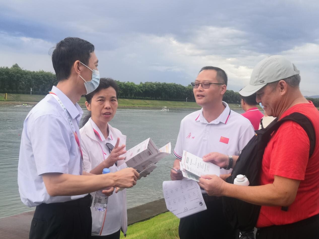 体科所丁宁涛所长带领科研人员在省运会赛艇赛场