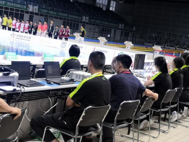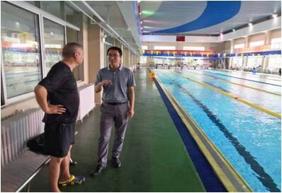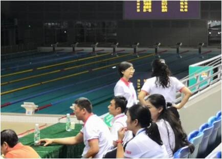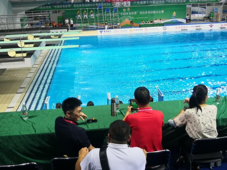 崔桂媛书记、杨景辉副所长在省运会跳水项目赛场