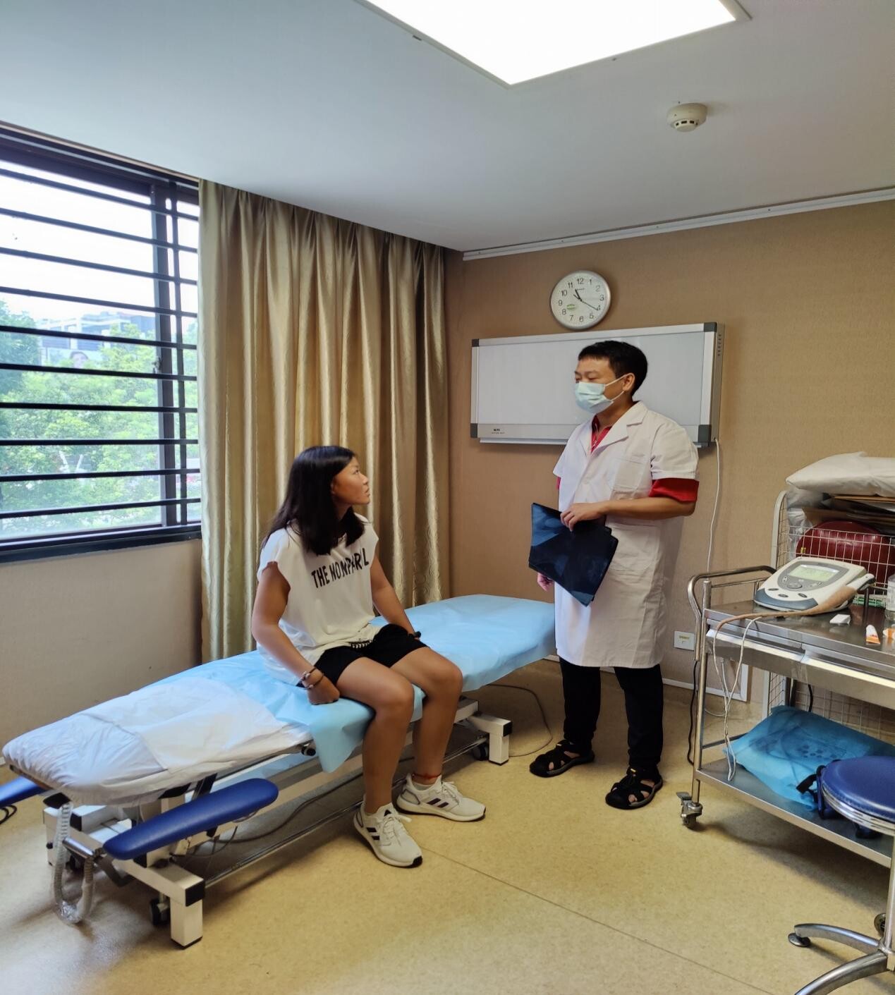 赛艇作为高强度运动项目,队员在训练期间患上伤病在所难免。队员何泽钧、冯志颖、宋亚敏、严海敏在开赛前均患有不同程度的腰膝劳损疼痛,体科所副主任医师利武汉详细诊断后,运用脊椎正骨手法、康复体能训练、针灸、DMS和肌贴等多种诊疗手段帮助队员缓解腰膝劳损疼痛,同时教会队员一套运动后拉伸放松的方法,向队员灌输运动训练后放松肌肉的重要性,以更好地恢复运动员的身体机能,为赛前训练保驾护航。