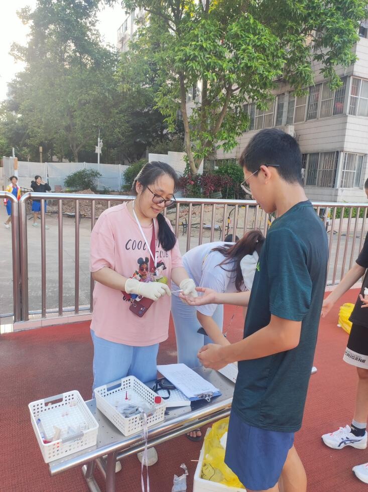 “管伊娜,快到我这里来!”“辛宇航,不要躺在地上,快到我这里来!”科研人员们着急地呼喊队员,迅速给队员手指夹上心率表立刻大声喊道“管伊娜即时心率204”“辛宇航即时心率198”……同时熟练地给队员们采指尖血,进行血乳酸测试。这是市体科所开展的模拟比赛强度乳酸测试工作场景,为了打好本届省运会,这个场景经常出现在田径场上、游泳池边。