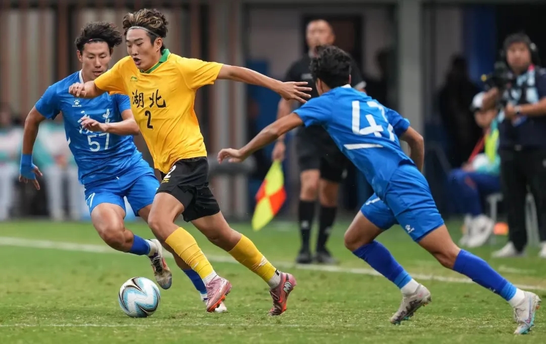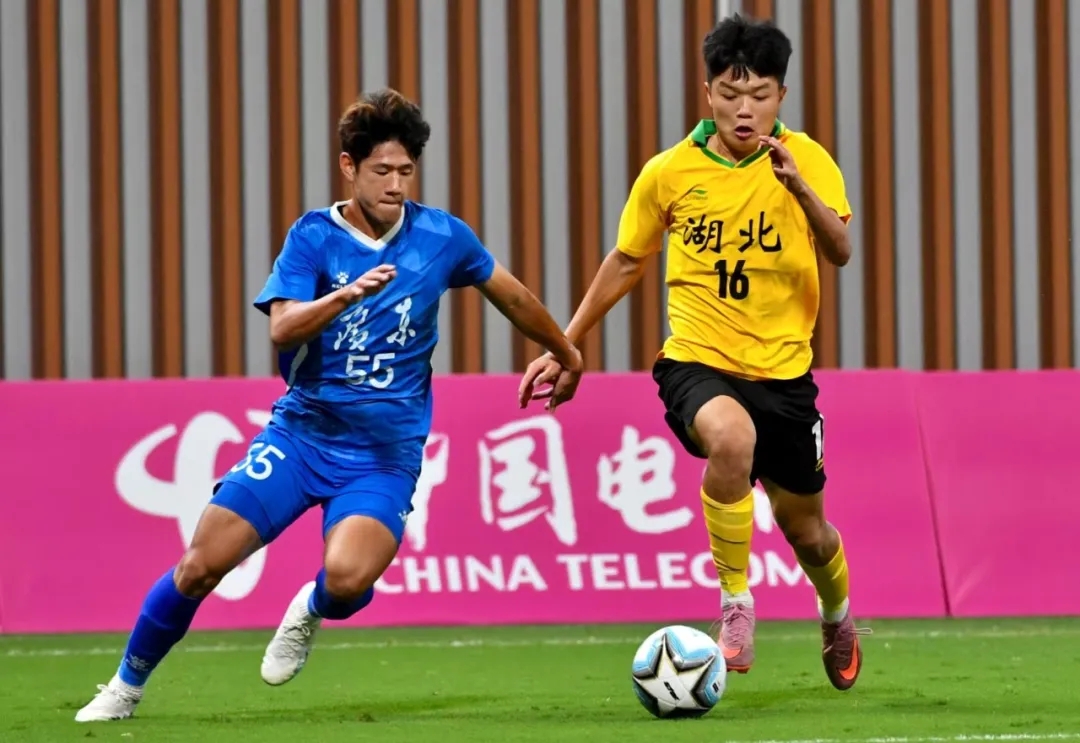 广东队和湖北队在半决赛分别淘汰上海、山东两支夺冠热门,唯一进球均来自补时阶段的点球,且两队是目前唯一保持全胜且一球不失的球队,此番对垒可谓针尖对麦芒。能够同以4连胜杀出重围,攻守均衡、发挥稳定是两队共同的特质。 广东U20男足这支队伍除进攻核心钟文外没有特别突出的明星级新星,以防守见长的他们更多的是依靠团队作战,老帅王宝山将硬朗防守和南粤足球“小快灵”的打法融会贯通,让球队的攻防更为平衡。 比赛开场后,两队便展开势均力敌的较量,攻防节奏紧凑。上半场双方都没能创造出绝佳得分机会,0比0的比分保持到中场休息。易边再战,僵局在第78分钟被打破,广东队获得关键点球,7号队员主罚命中,皮球角度刁钻直挂边网,帮助球队1比0取得领先。 眼看金牌近在咫尺,但广东队在常规时间的最后一分钟城门失守,湖北队远射攻入世界波,将比赛拖入加时。 加时赛两队均未有建树,比赛进入残酷的点球大战。点球对决中,前两轮双方主罚队员均稳稳命中,比分交替上升。第三轮,广东队28号主罚的点球击中横梁弹出,湖北队抓住机会取得领先优势。此后双方队员均顶住压力完成破门,广东队最终以总比分4比6收获一枚银牌。 广东U20男足主帅、中国足球名宿王宝山认为,全队从小组赛一路过来都发挥出自己的特点,只可惜今天最后时刻因为一次疏忽而导致丢金。不过,对于广东队的这些年轻球员来说,未来的职业生涯还很长,希望他们不要因为这次失败而丧失继续前进的斗志,广东足球未来还是很有希望的。