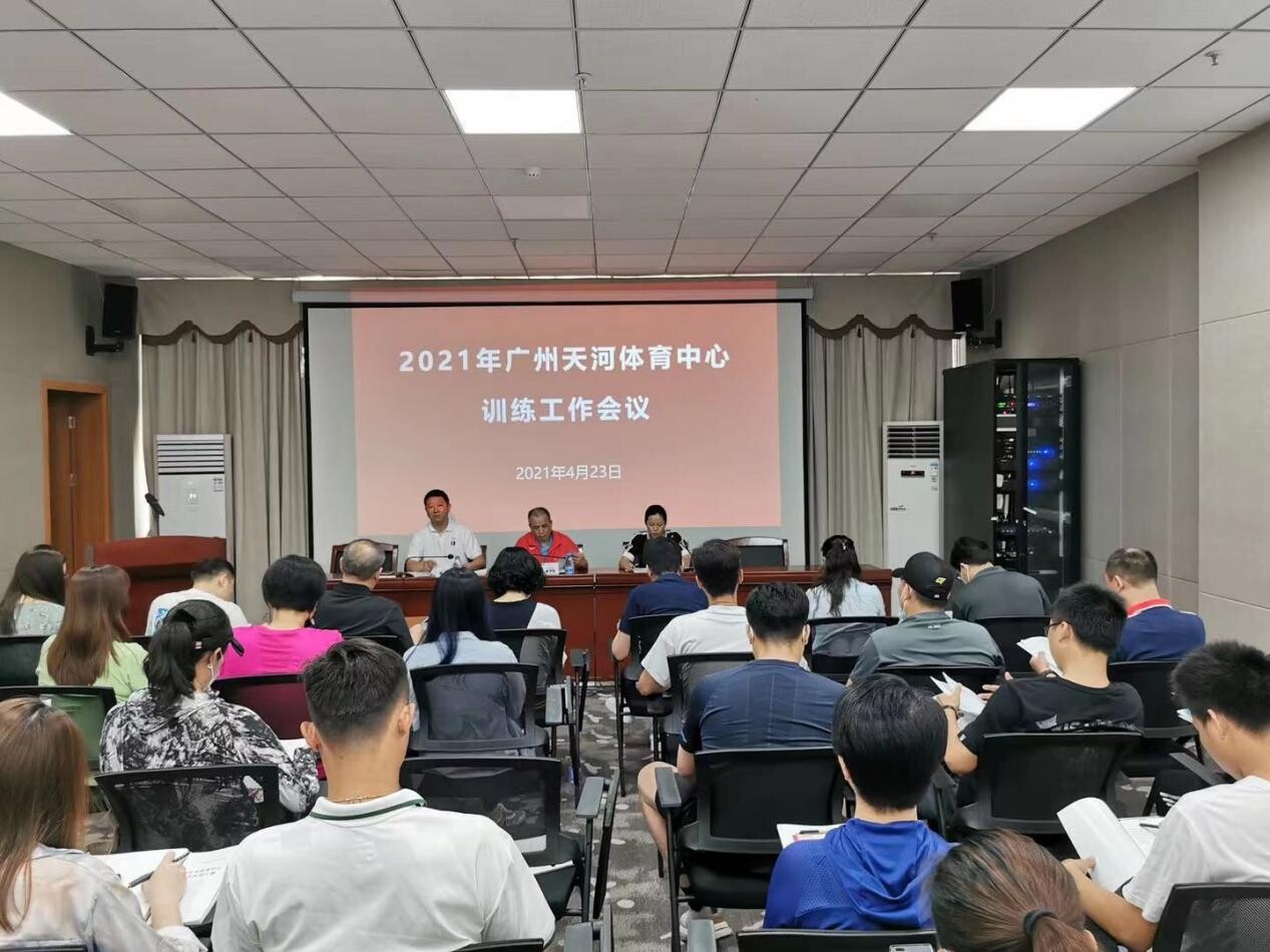 4月23日上午,广州天河体育中心召开训练工作会议,中心领导及相关部门负责人、各专项部工作人员、各运动队教练员近50人参加了会议。