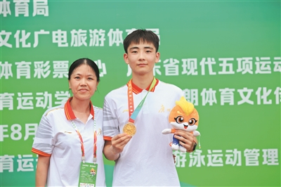昨天,广东省第十六届运动会“中国体育彩票”竞技体育组现代五项比赛在东莞体育运动学校落下帷幕。现场比分 代表团现代五项队越战越勇,在昔日亚洲冠军陈俊梅教练的率领下再添两金,以5金1银3铜位居金牌榜首位,圆满收官。其中,广州队选手孙祥淼和周子恒获得道德风尚奖。对于一支建队只有17个月的年轻队伍来说,能够取得如此骄人的战绩,背后肯定有一段励志故事,不管是运动员时代横跨三个大项的陈俊梅,还是一众为训练场地发愁的运动员,他们都付出了超乎常人的努力,才有了在省运会上大放异彩的卓越表现。