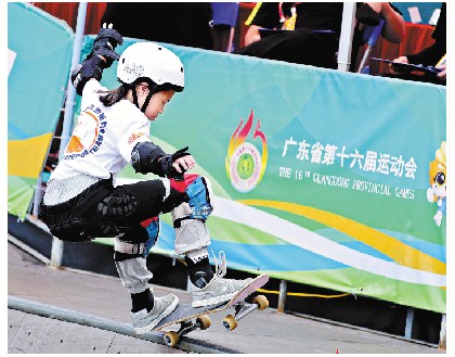 8月18-19日,广东省第十六届运动会滑板赛在广州大学城体育中心滑板场中级区火热进行。现场比分 代表团滑板队派出15名运动员参加8个小项的争夺,共获得3金、2银、4铜,总分185分,金牌、奖牌、团体总分均位列第一。值得一提的是,广州队没有采用“三集中”的训练方式,队员都是“读书郎”,利用课余和节假日时间苦练内功,最终如愿在省运会赛场上创造佳绩。