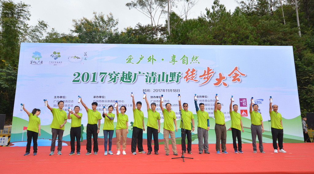 党组书记、局长罗京军出席并宣布徒步大会开始,中国登山协会副秘书长罗申, 清远市体育局局长许广勇,花都区委常委、宣传部长邹旋,广州市体育总会副主席陈小华,花都区体育局局长何东升,清远市清城区副区长罗婉玲等出席并共同鸣笛启动2017穿越广清山野徒步大会活动。此外,还有广州市花都区芙蓉度假区管委会,清远市清新区、阳山县,肇庆市体育局等有关部门负责人,新闻媒体朋友和市民朋友参加活动。