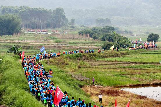 5月12日,第五届广州户外运动节2019广清穿越(佛冈-从化)徒步大会,在清远佛冈汤塘镇至广州从化鳌头镇的山野田间圆满举行。现场比分 、清远市政协、从化区政协、佛冈县委相关领导共同为大会鸣笛起步,并与2000多名市民一齐感受双城魅力。