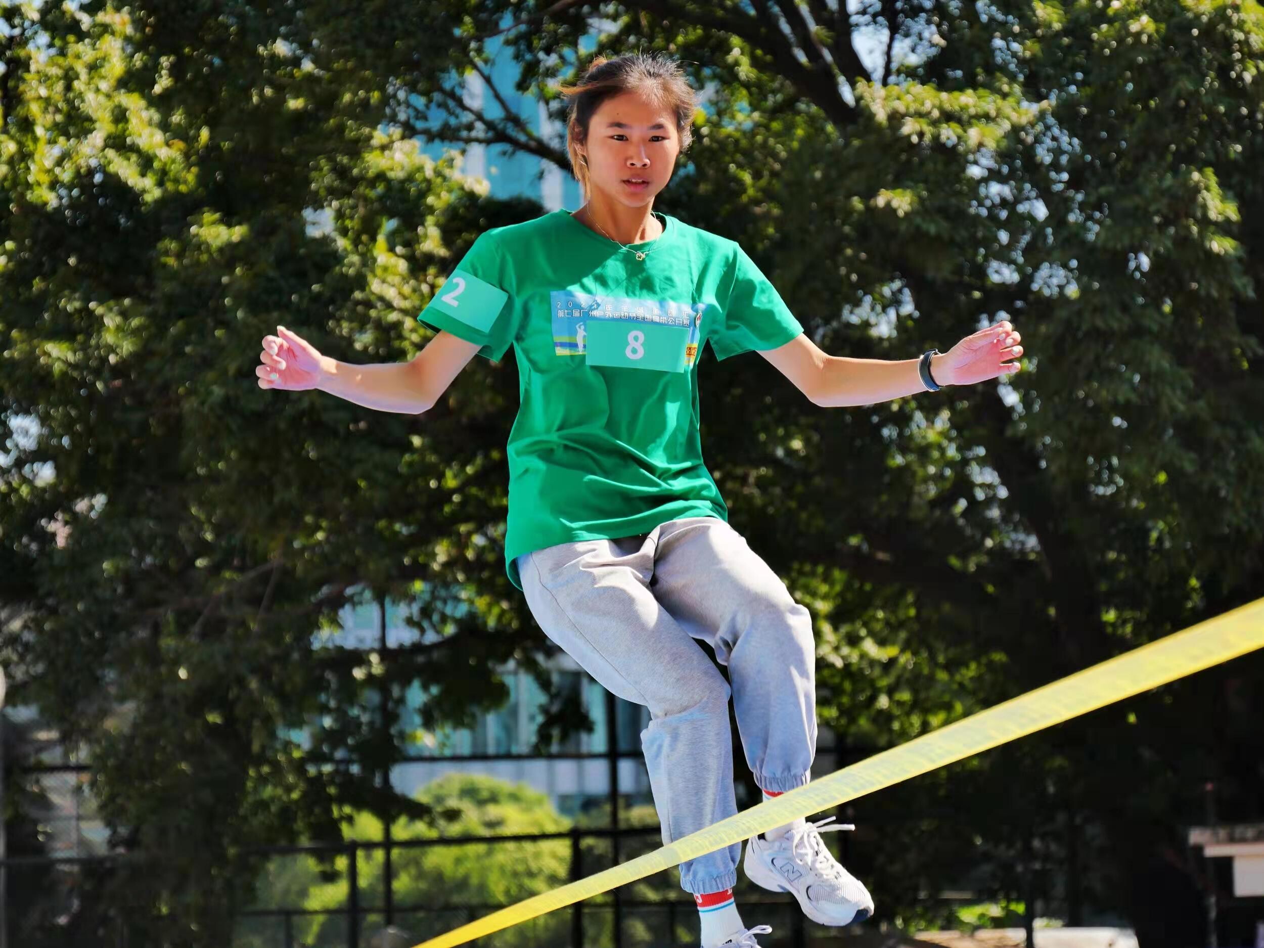 扁带运动是一项由攀岩运动派生出来的运动项目,被誉为“绳索上的芭蕾”,选手在扁带上保持身体平衡,同时要完成行走、跳跃、空翻等各种难度动作,是一项极具挑战、内外双修的平衡竞技运动,集挑战、竞技、表演、观赏于一体,深受广大青少年的喜爱。