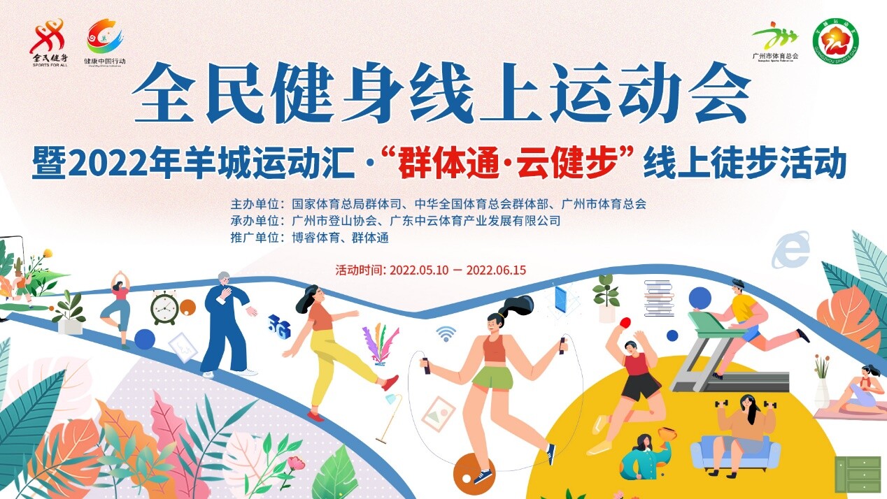 疫情有反复,健身不间断,由国家体育总局联合国内各大体育组织和互联网平台开展的“全民健身线上运动会”在全国热烈开展,为群众提供线上展示、交流和互动的机会,丰富群众休闲生活,指导开展科学健身,培养良好健身习惯。广州市体育总会积极响应号召,于近日推出2022年羊城运动汇·“群体通·云健步”线上徒步活动,将一直持续至6月15日,由现场比分 “群体通”全民健身服务平台提供技术支持。旨在倡导“你我同行 健康生活”的理念,引导广大群众通过日常的健步走方式坚持锻炼身体,参与户外运动,提高免疫力,营造全民健身运动热潮。