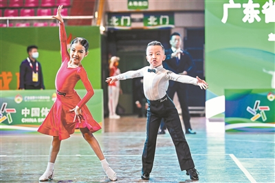比赛开始后,广州队的何鑫、郭幼琪两位小运动员一个7岁,一个9岁,在拉丁舞二项业余少儿1组的比赛中,配合默契、表现惊艳,以“黑马”之姿为广州代表队赢得了本届省运会的广州首项一等奖,舞蹈赛场多点开花,捷报频传。
