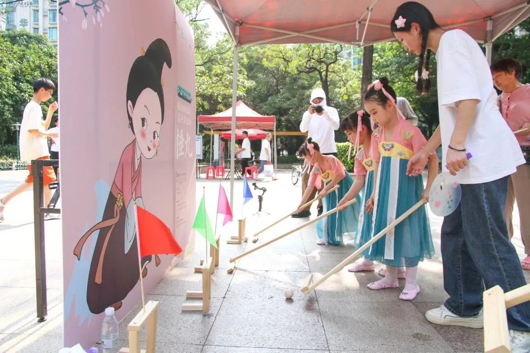 活动首次采用“国潮+传统”概念,设置精心打造蹴鞠、捶丸、投壶、毽球、五子棋、射箭6富有文化底蕴和传统特色的体育项目传统运动为代表的岭南体育文化赛事运动,供现场市民群众通过亲子合作等方式进行体验。活动吸引了居民朋友、青少年约200余人参与。市民通过亲子合作亲身体验多元化、趣味性的体育运动,现场还准备了精美礼品,完成通关卡上所有任务即可领取精美奖品。市民群众对“国潮+体育”的体育项目设置给予高度评价并踊跃参与,现场气氛热烈,共约200余人参与体验。