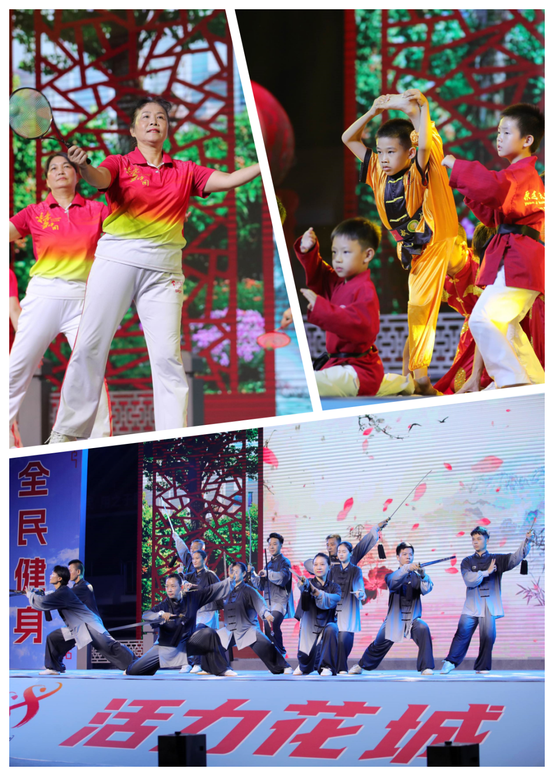 体育情景剧《全民健身 动起来》展示了广州群众体育热火朝天,不同年龄和职业的街坊邻里们精神饱满、神采飞扬参加全民健身运动的热闹场景。情景剧中,居民在社区广场亮出各自的健身绝活,街舞、体育舞蹈、太极剑、柔力球、跳绳、武术等精彩表演轮番上场,大小朋友齐声抢答“全民健身日自2009年设立”“最新修订的《中华人民共和国体育法》2023年1月1日起正式施行”等热门体育话题,为全民健身日带来一波又一波热潮。随着歌舞表演《一起来 更精彩》的音乐响起,台上台下共同唱响代表着羊城体育无限激情和充满梦想的美妙旋律,将活动现场气氛推向高潮,鼓舞全场市民共同投身健身运动,享受生命活力,掀起新一轮全民健身运动热潮!