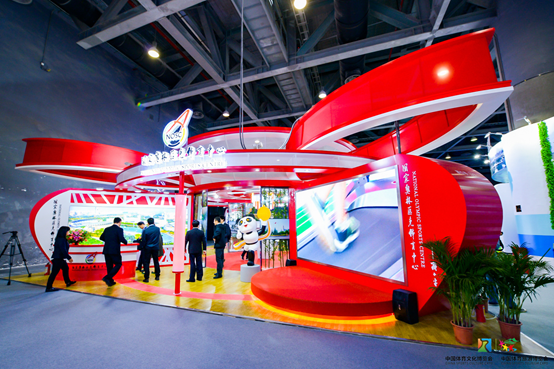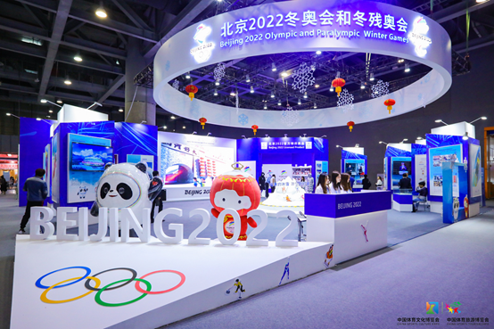 国内体育文化体育旅游展区,北京 2022 年冬奥会和冬残奥会组织委员会首次亮相两个博览会,主设北京2022年冬奥会和冬残奥会基本情况、冰墩墩诞生记、北京2022年冬奥会和冬残奥会知识竞答活动、北京2022官方特许商品等四个版块,通过视频、文字、图片、实物、VR体验等多种形式让观众零距离了解北京冬奥会筹办情况。其中,北京2022年冬奥会和冬残奥会基本情况版块从北京冬奥会和冬残奥会的愿景、办奥理念、冬奥项目与冬残奥项目、三大赛区规划图、筹办工作进展、公众参与、可持续发展、京津冀协同发展、吉祥物以及北京2022年冬奥会赞助商信息等10个方面系统介绍了北京2022年冬奥会和冬残奥会的筹办进展。国家体育总局体育彩票管理中心展区展示了中国体育彩票的发展历程以及体彩中心在公益金使用、支持体育事业、发展公益事业等方面履行的社会责任状况。国家奥林匹克体育中心围绕体育文化、产业经营、驻训保障、历史沿革、场馆运行、全民健身等内容板块展现了我国群众体育、竞技体育、体育文化的发展历程和辉煌成就。北京奥林匹克公园管理委员会展区通过图文并茂的形式介绍了公园以及体育场馆情况,现场还设置了VR滑雪供参展观众互动体验。北京体育大学展区向大众展示了VR三维动作捕捉技术在康复训练领域上的实践、虚拟仿真技术在体育专业课堂教学中的应用研究等。