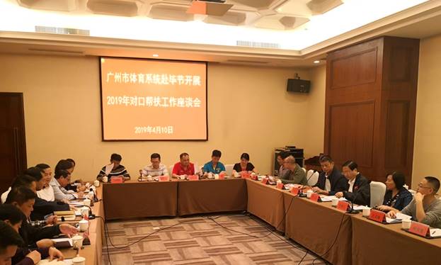在4月10日召开的座谈会上,罗京军听取了毕节市体育局领导关于2018年体育工作及帮扶项目落实情况汇报,并与各区、县体育局负责人就扶贫工作中的重点和难点问题进行了深入交流和探讨,针对体育基础设施建设滞后、体育场馆设施短缺、体育专业人才匮乏等问题,广州市各区体育行政部门领导与对口帮扶的区、县现场对接,提出了对口帮扶意见和建议,认真研究制定了帮扶措施和路线图。