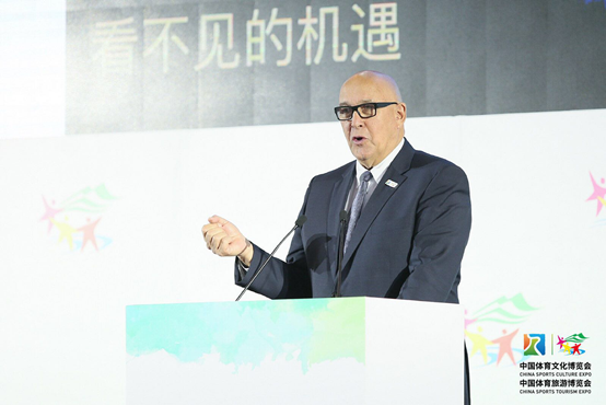 在“中国国际体育文化体育旅游高峰论坛”上,国家体育总局宣传司司长涂晓东,世界羽毛球联合会主席波尔-埃里克•霍耶,国际篮联中央局委员、大洋洲篮协主席、2019年国际篮联篮球世界杯协调委员会主席伯顿•希普利,香港奥委会主席霍震霆等进行了主旨发言。