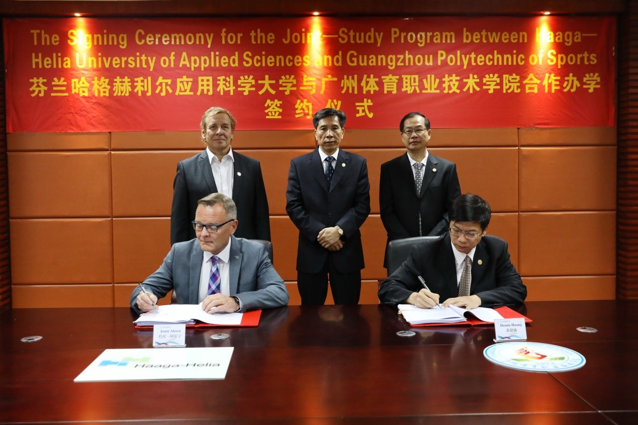 为进一步扩大国际化规模,提升国际化合作办学层次,6月11日,学院隆重举行与芬兰哈格赫利尔应用科学大学体育商学院第二轮合作办学的签字仪式,约尼·阿霍宁副校长、卡利·波罗纳赫教授出席仪式,翻开中芬合作办学新篇章。