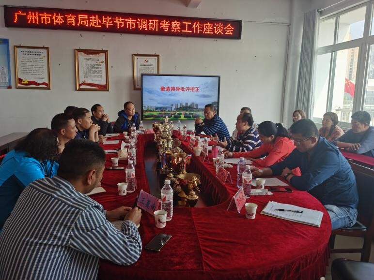在毕节调研期间,调研组一行察看了毕节市体校体育设施建设和队员训练情况,参观了生态体育公园和赛艇训练基地。考察了黔西县体育场馆设施建设情况。通过座谈,双方进一步对接了体育交流合作需求和初步意向。