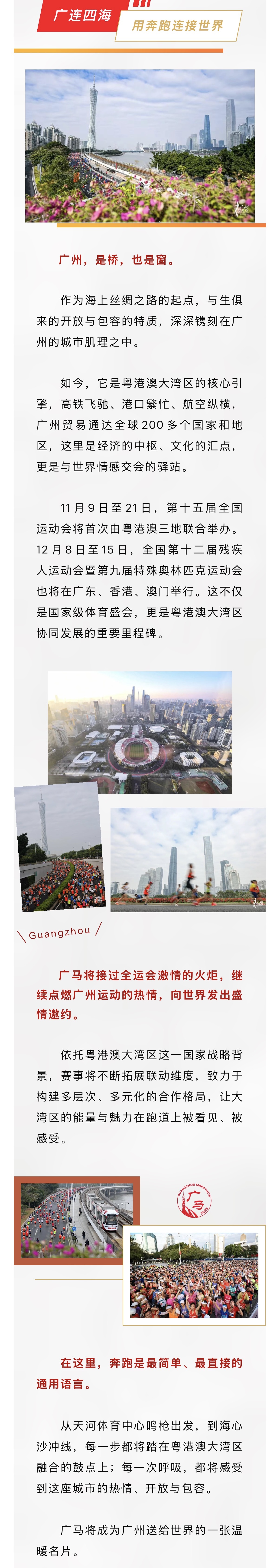 它延续着全运会的热血余温,让这座城市的运动激情继续燃烧;它作为粤港澳大湾区的核心引擎,以更开放的姿态拥抱世界;它将在冬至鸣枪起跑,用42.195公里的脚步,奔向春天的希望。