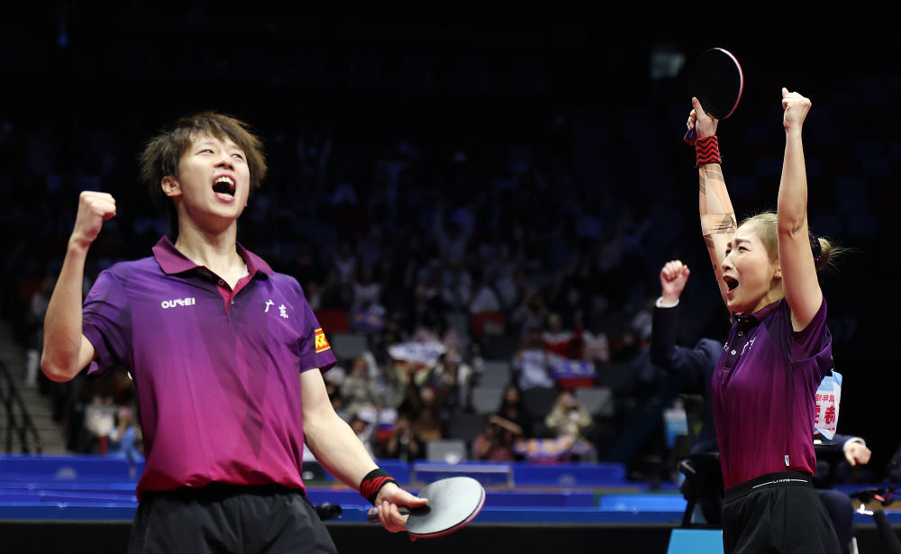 林高远和刘诗雯庆祝夺冠(来源:新华社)