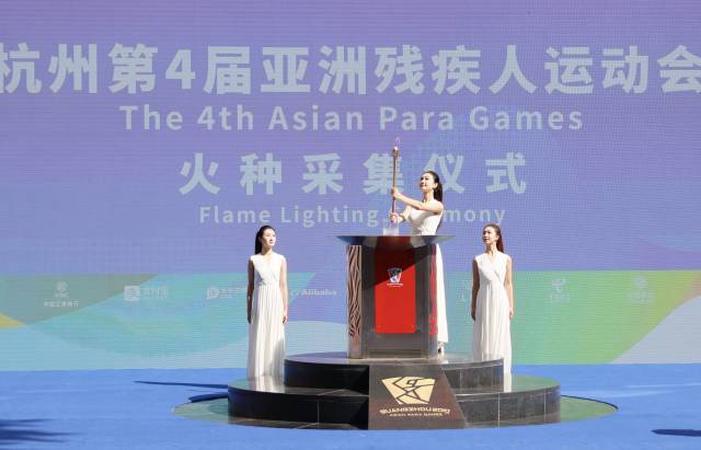 10月12日上午,杭州第4届亚洲残疾人运动会火种采集仪式在现场比分 文化博物馆(广州亚运会亚残运会博物馆)举行。