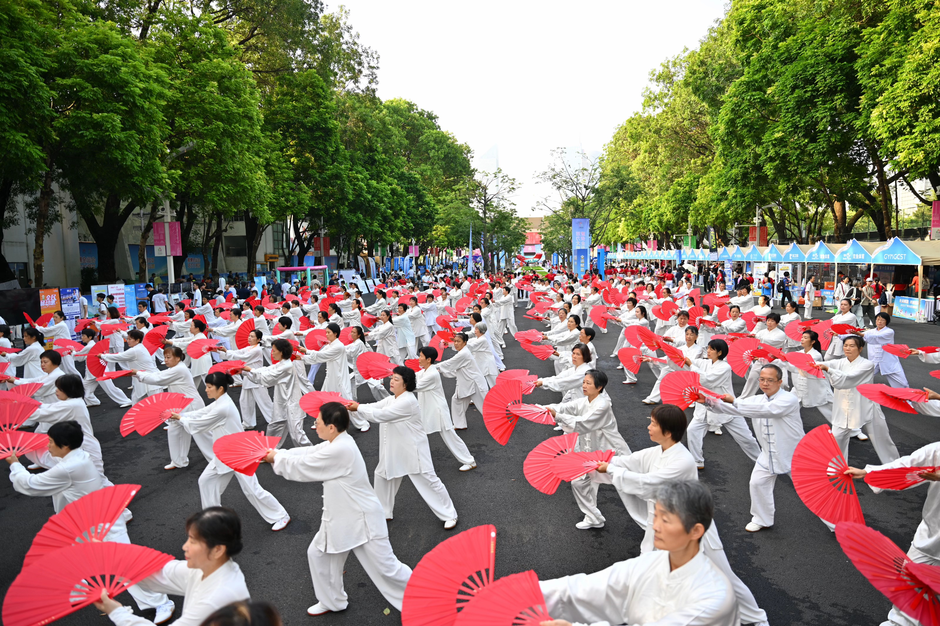 2025年8月8日上午,2025年“全民健身日”主题活动广东省主会场、第十五届全国运动会群众比赛乒乓球项目决赛开赛仪式、广州市体育节暨消费季系列活动启动仪式在广州天河体育中心北广场聚力启航,中国乒协主席王励勤携乒乓球奥运冠军乔红、李晓霞、刘诗雯与领导来宾一同按下按键,宣布主题活动启动。启动仪式后,第十五届全国运动会群众比赛乒乓球项目决赛正式开赛。与此同时,超过3000名市民踊跃参加活动现场的30余项丰富多彩的全民健身主题活动,沉浸式打卡体育消费嘉年华市集,感受全民健身的无限魅力。