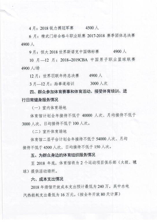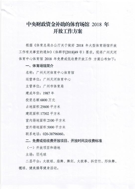 中央财政资金补助的体育场馆2018年开放工作方案(天河体育馆)
