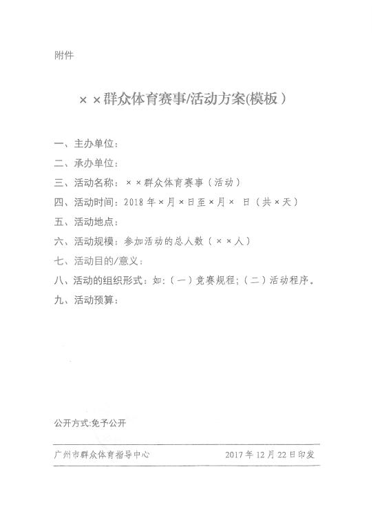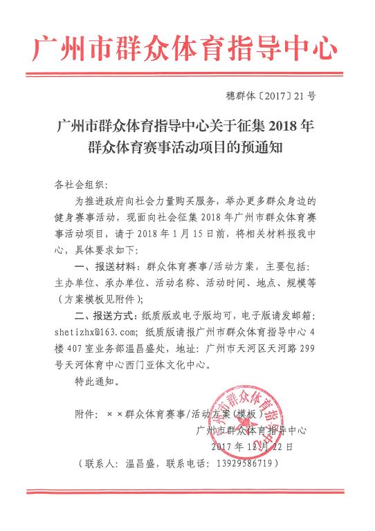 广州市群众体育指导中心关于征集2018年群众体育赛事活动项目的预通知