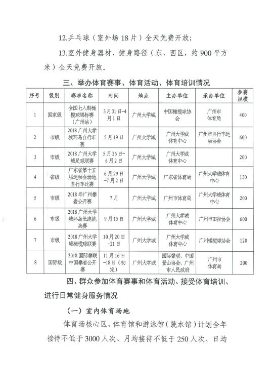 中央财政资金补助的体育场馆2018年开放工作方案(广州大学城体育中心)