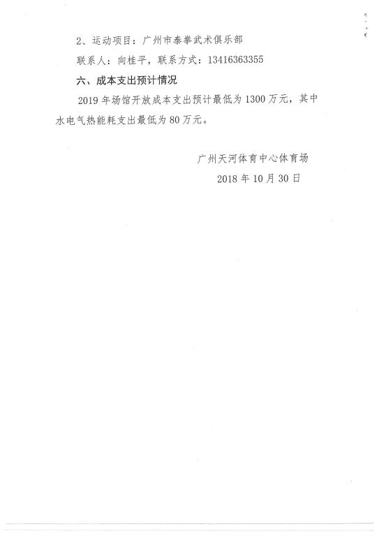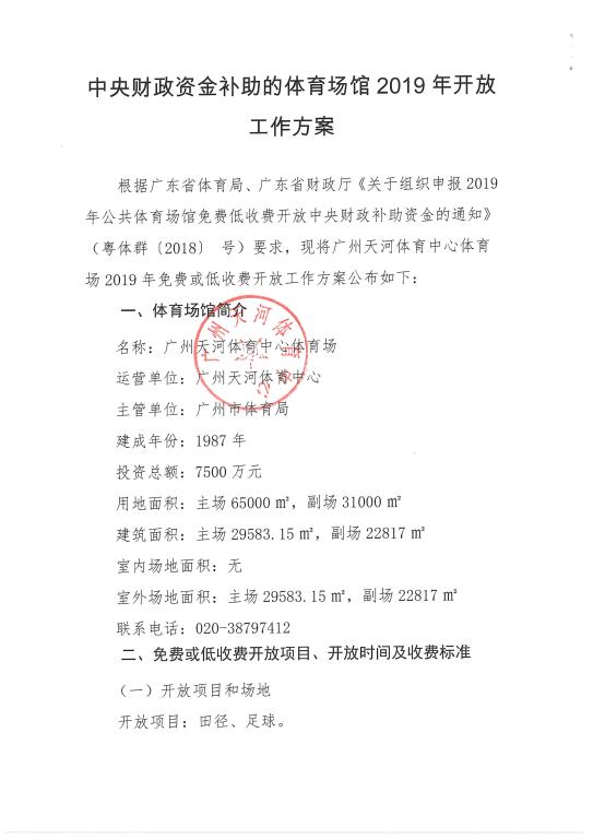 中央财政资金补助的体育场馆2019年开放工作方案(天河体育场)