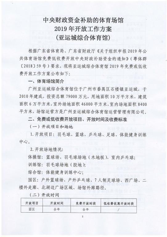 中央财政资金补助的体育场馆2019年开放工作方案(亚运体育馆)