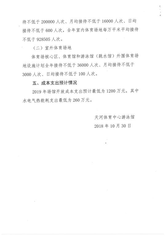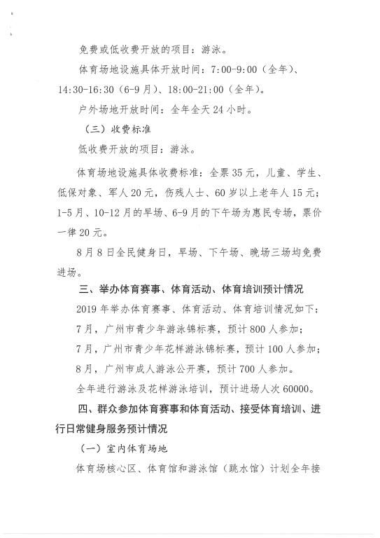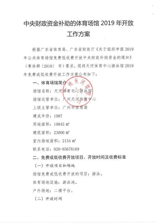 中央财政资金补助的体育场馆2019年开放工作方案(天河游泳馆)