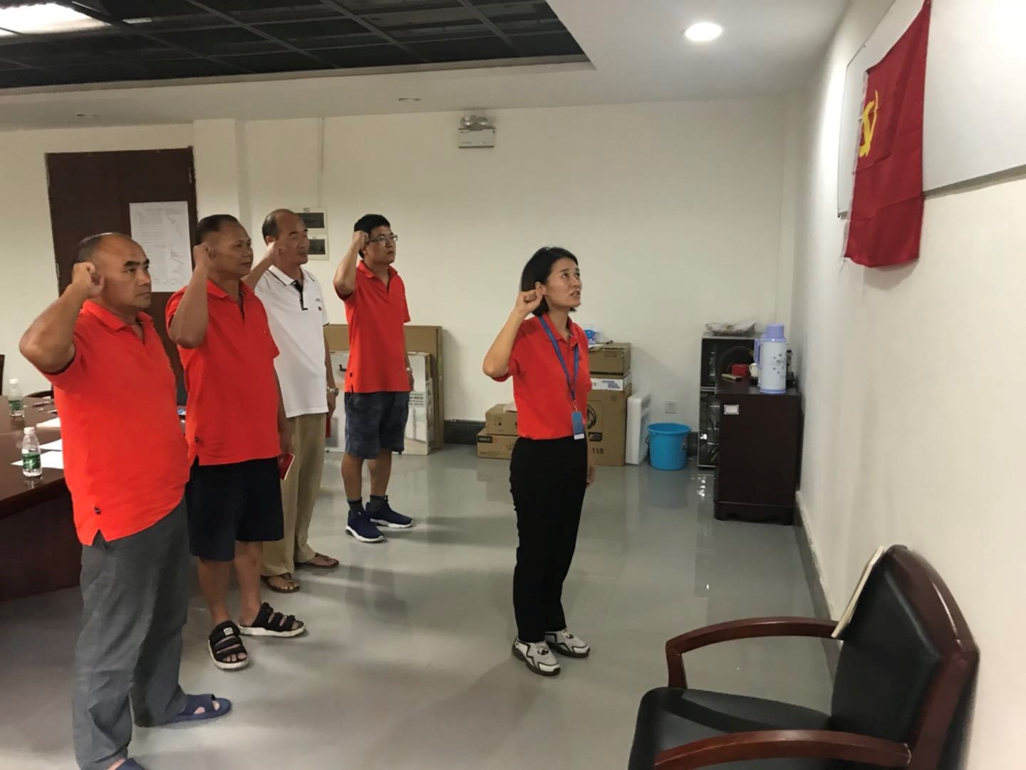 党支部书记李卓领读入党誓词,全体党员面向党旗,高举右拳,庄严宣誓,既增强了主题党日的仪式感,又加强了党员的自我党性锤炼和修养。