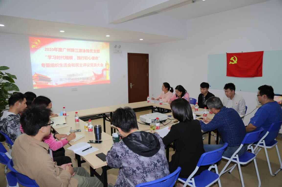 为开展好组织生活会和民主评议党员工作,广州珠江游泳场党支部高度重视、充分准备,会前组织集体学习、做好征求意见、研究解决措施和会议主题。2月25日下午,在会议室召开2020年度“学习时代楷模,践行初心使命”专题组织生活会和民主评议党员大会,会议由党支部书记主持,在职党员11人参加,市体育局机关党委二级调研员杨立峰同志莅临指导。