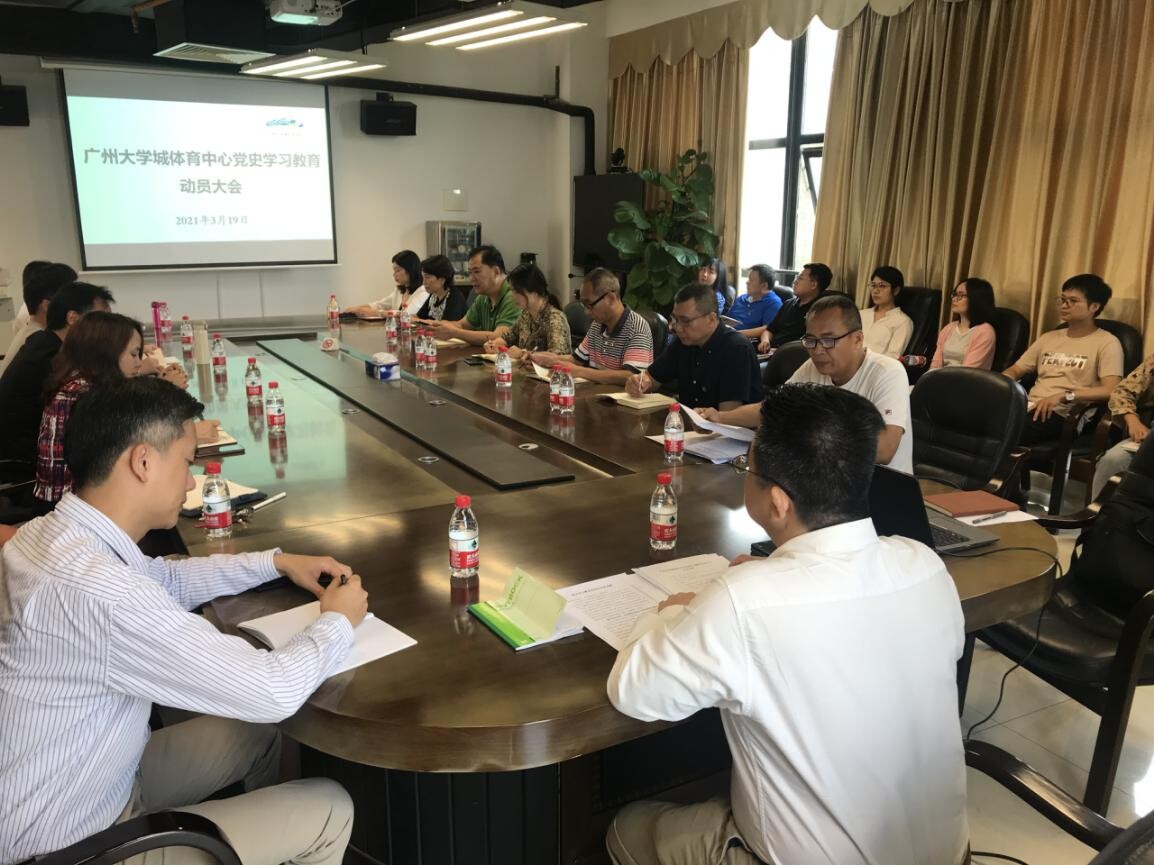3月19日上午,广州大学城体育中心党总支召开党史学习教育动员大会,传达学习习近平总书记在党史学习教育动员大会上的重要讲话精神,以及省、市和局党组党史学习教育动员会会议精神,并对中心开展党史学习教育作了部署安排。中心全体在职党员和青年理论学习小组成员30余人参加学习。