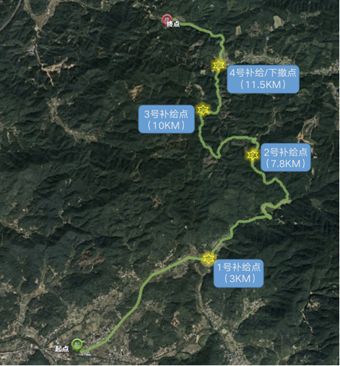 补给点:各4处(3公里处/7.8公里处/10公里处/11.4公里处);