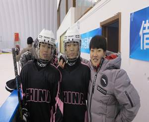 12月18日,本就是一个平凡的日子,国家冰球集训队一如既往的训练。当天河体育中心慰问小组进入北京华星沙河冰球馆的一刹那,广州籍的运动员们瞬间就沸腾了。范淑芳教练刚跨进大门,眼尖的汤丽婷(正在做康复治疗)不顾脚的疼痛一下扑了过去,仿佛见到了亲人。