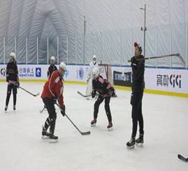 在北京昌平国家冰球队训练基地的冰场上,多名女运动员身穿印着“广东”的训练服,驰骋穿梭,其中黄海旋、李定怡、罗文霞、林紫格、汤丽婷五名队员来自广州市女子曲棍球队,他们是从曲棍球项目跨项输送到国家冰球集训队的。