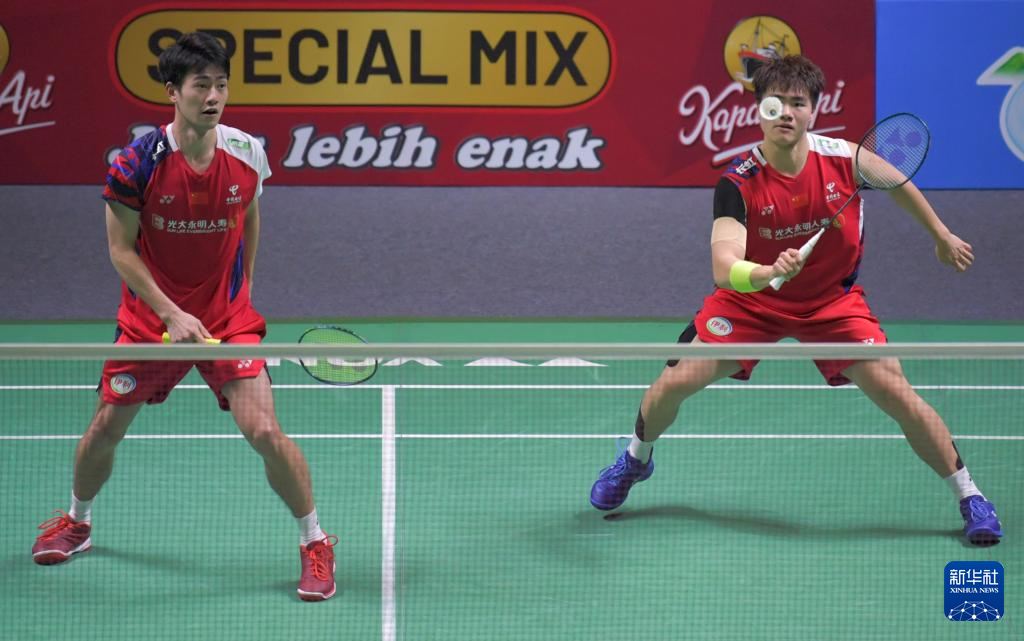 梁伟铿(右)/王昶在比赛中回球