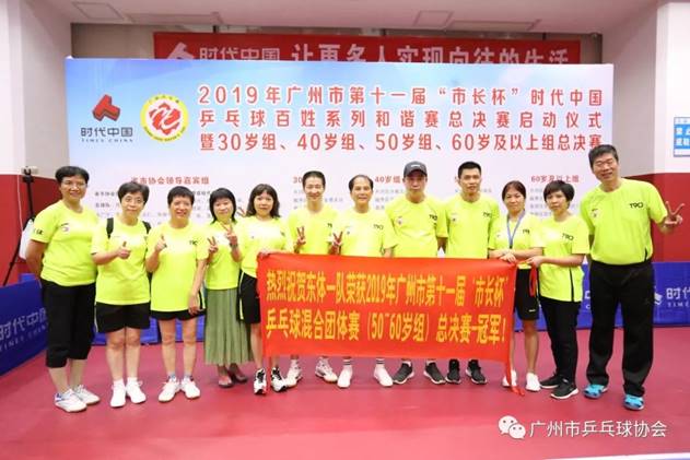 8月31日,2019年广州市第十一届“市长杯”时代中国乒乓球百姓系列和谐赛30岁组、40岁组、50岁组、60岁及以上组总决赛在时代中国控股有限公司的冠名支持下,于广州亚运体育文化中心圆满落幕。至此,为期4个月的“市长杯”乒乓球赛全部结束。今年的“市长杯”乒乓球赛迈入第11年,在全市11个赛区进行八个组别的角逐,比赛不分地域、不分阶层、不分性别,为进一步着力打造我市群众体育精品赛事IP,组委会想方设法,推陈出新,极大地增强了球迷的体验感和参与感,赢得了市民群众的良好口碑,八大组别吸引超过万人参赛。