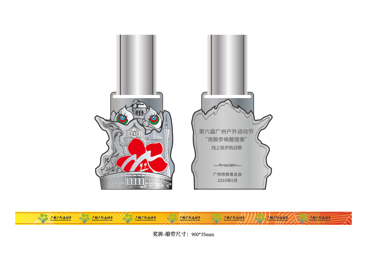 广大市民可以通过“广州市体育总会”“群体通”微信公众号进行报名,参赛期间内可在任意地点使用任意手机运动软件(APP)记录,徒步挑战赛单次或多次累计里程达到6公里或12000步,骑行挑战赛即达到单次或多次骑行累计里程达到10公里,即可获得“第六届广州户外运动节”电子完赛证书。活动组委会还为本次“特别”的线上活动设计了精美的完赛奖牌,选手报名时可选择“完赛奖牌”套餐,成功完赛后将会通过邮寄的方式送到大家手上。