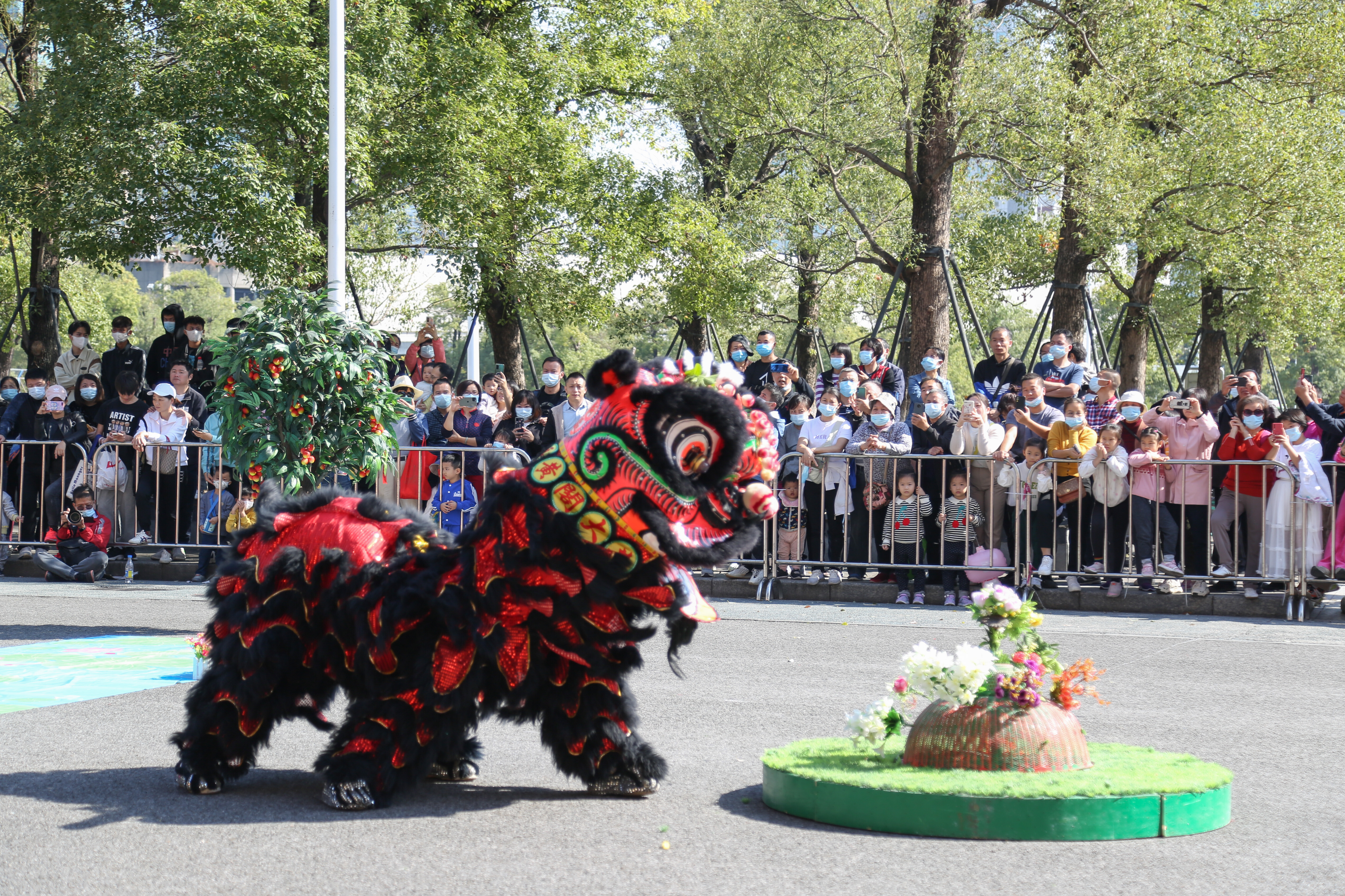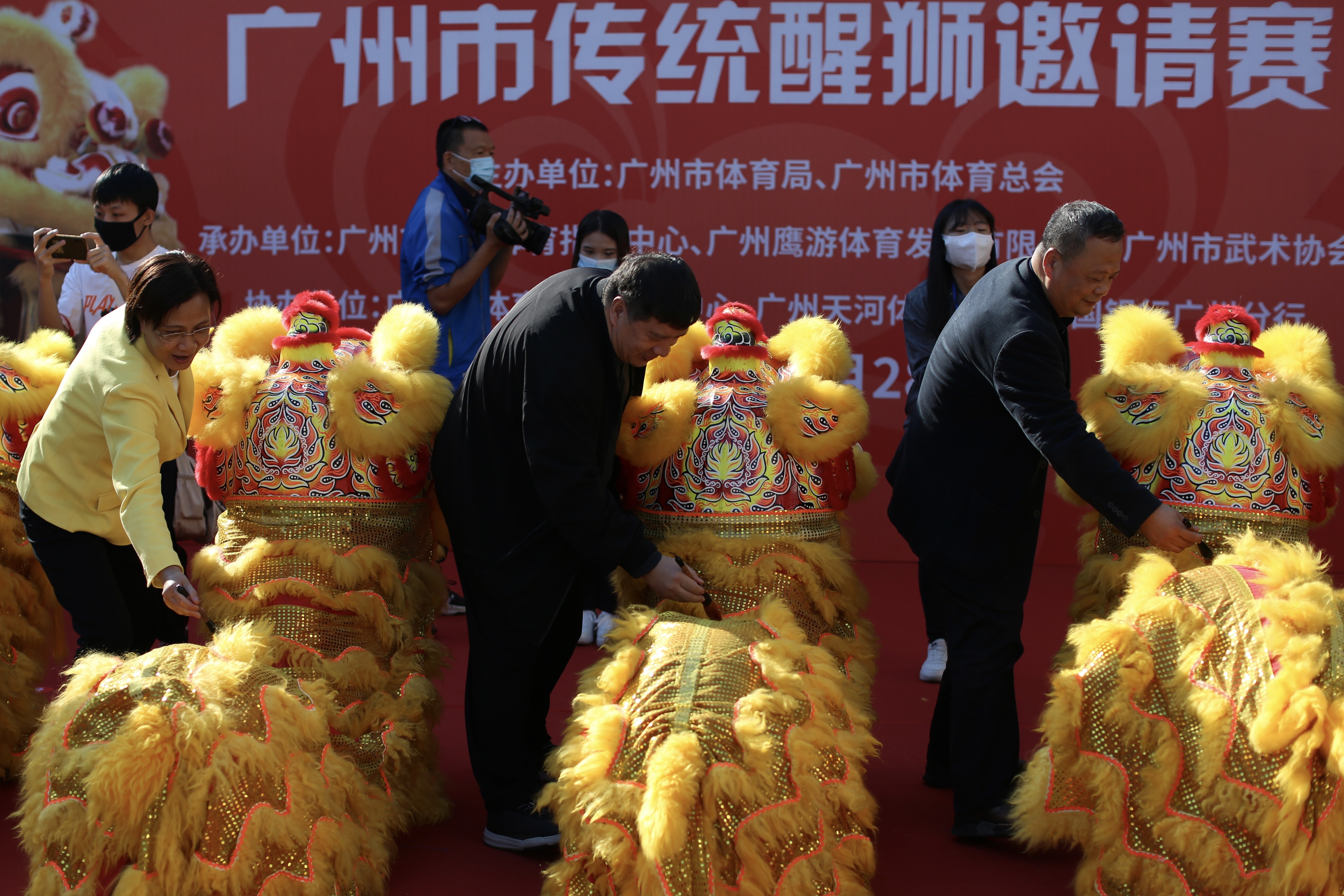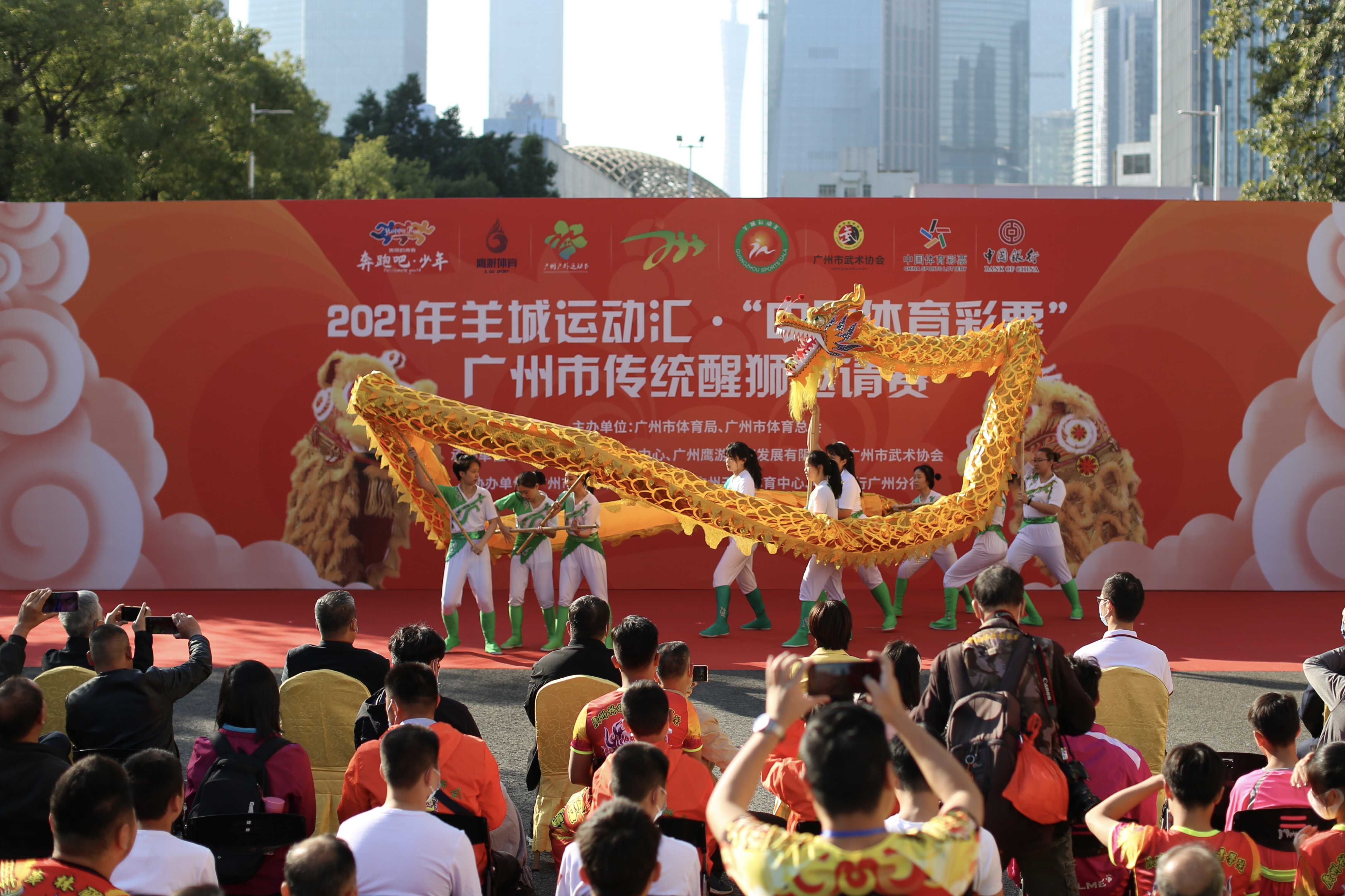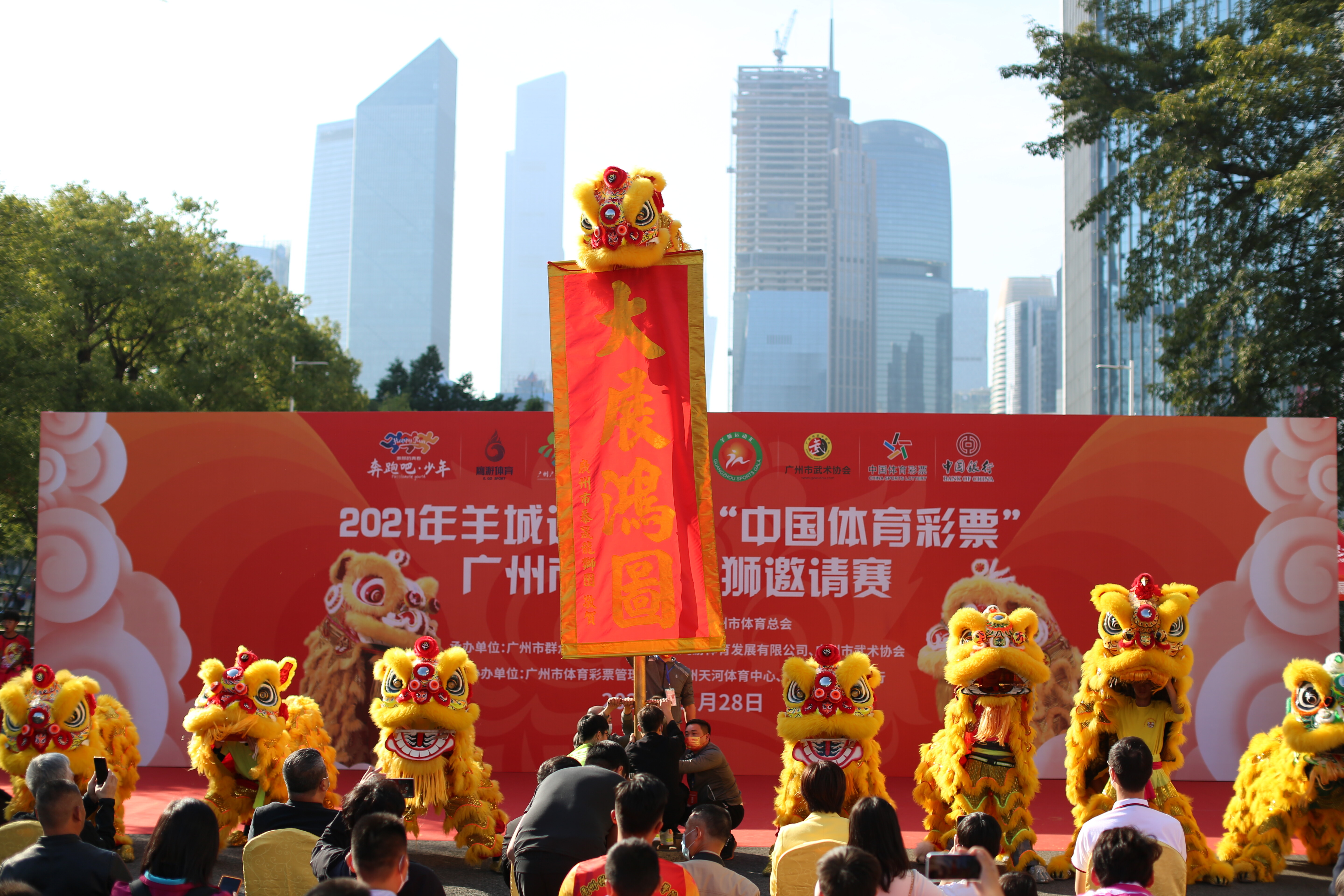 11月28日,广州天河体育馆东广场,锣鼓喧天、征旗林立,60多头醒狮、300多名醒狮队员身穿色彩缤纷的龙狮图腾服装,气势威武雄壮……由现场比分 、广州市体育总会主办,广州市群众体育指导中心、广州市体育彩票管理中心、广州天河体育中心、广州市武术协会等承办,中国银行广州分行协办的2021年羊城运动汇·“中国体育彩票”广州市传统醒狮邀请赛正在这里举行。