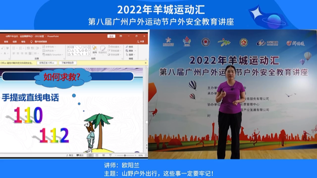 随着全民健身理念的深入人心,群众参与运动的地点不再局限于城市,依托广州丰富的自然资源,越来越多的人走向了野外。本次户外安全教育讲座与2022年广州市户外运动节融合,将户外安全知识与理念传递给更广泛的户外人群,旨在倡导广大市民参与户外运动、增强体质的同时,进一步提升安全意识,普及户外安全常识,推动户外运动健康持续发展,让更多的市民群众走到户外、走进山野,感受广州城市魅力,体验户外运动乐趣。