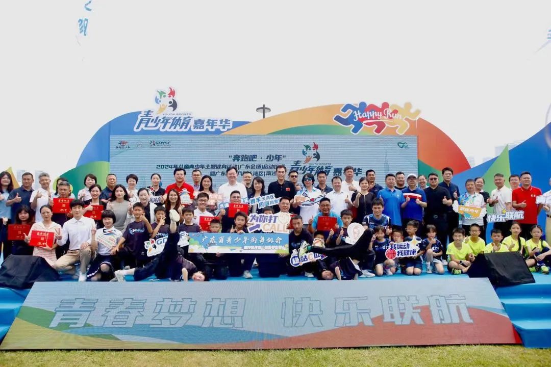5月18日,“奔跑吧·少年”2024年儿童青少年主题健身活动(广东会场)启动仪式暨广东省第八届大湾区青少年体育嘉年华在广州市南沙区明珠湾灵山岛水舞广场举行。