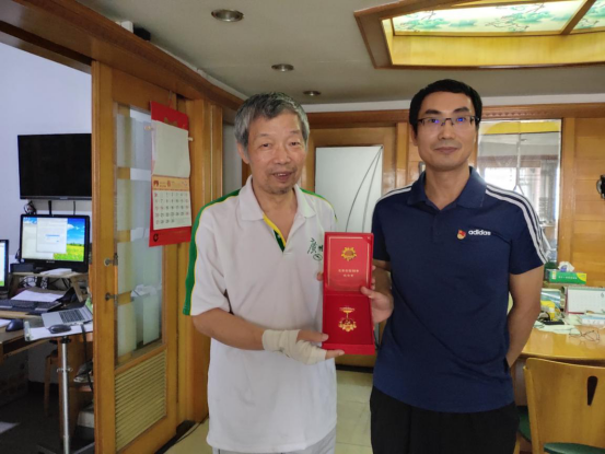 在走访中,党支部为闫老颁发了纪念章,感谢他多年来的辛勤付出,为体科所发展作出的贡献。在交谈中,所领导与工作人员详细询问了老同志的身体状况和生活状况,嘱咐他们要加强锻炼,保重身体。一同到访的工作人员中有曾与闫老共事多年的同志,他们共同回忆过去为科研事业艰苦奋斗的岁月点滴,现场气氛热烈而温馨。最后,党支部为闫老送上《中国共产党简史》等党史学习读物,激励老党员不断丰富思想,永葆政治本色。闫老表示收到纪念章感到非常的光荣,十分感谢组织的慰问和关怀。