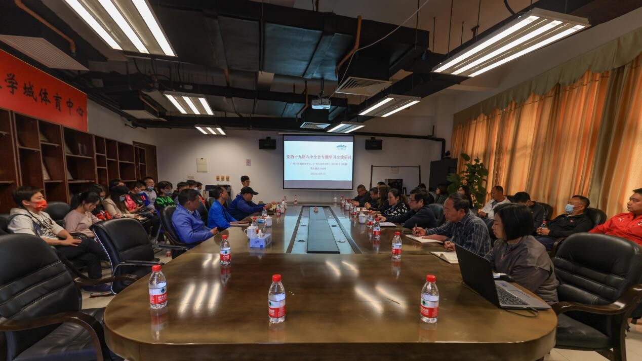随后,双方党支部书记结合学习党的十九届六中全会精神的体会和各自单位、部门工作进行交流发言。学习交流会结束后,广州大学城体育中心组织参会人员进行了网球友谊赛、极限运动体验及环中心湖健步行的共建活动。