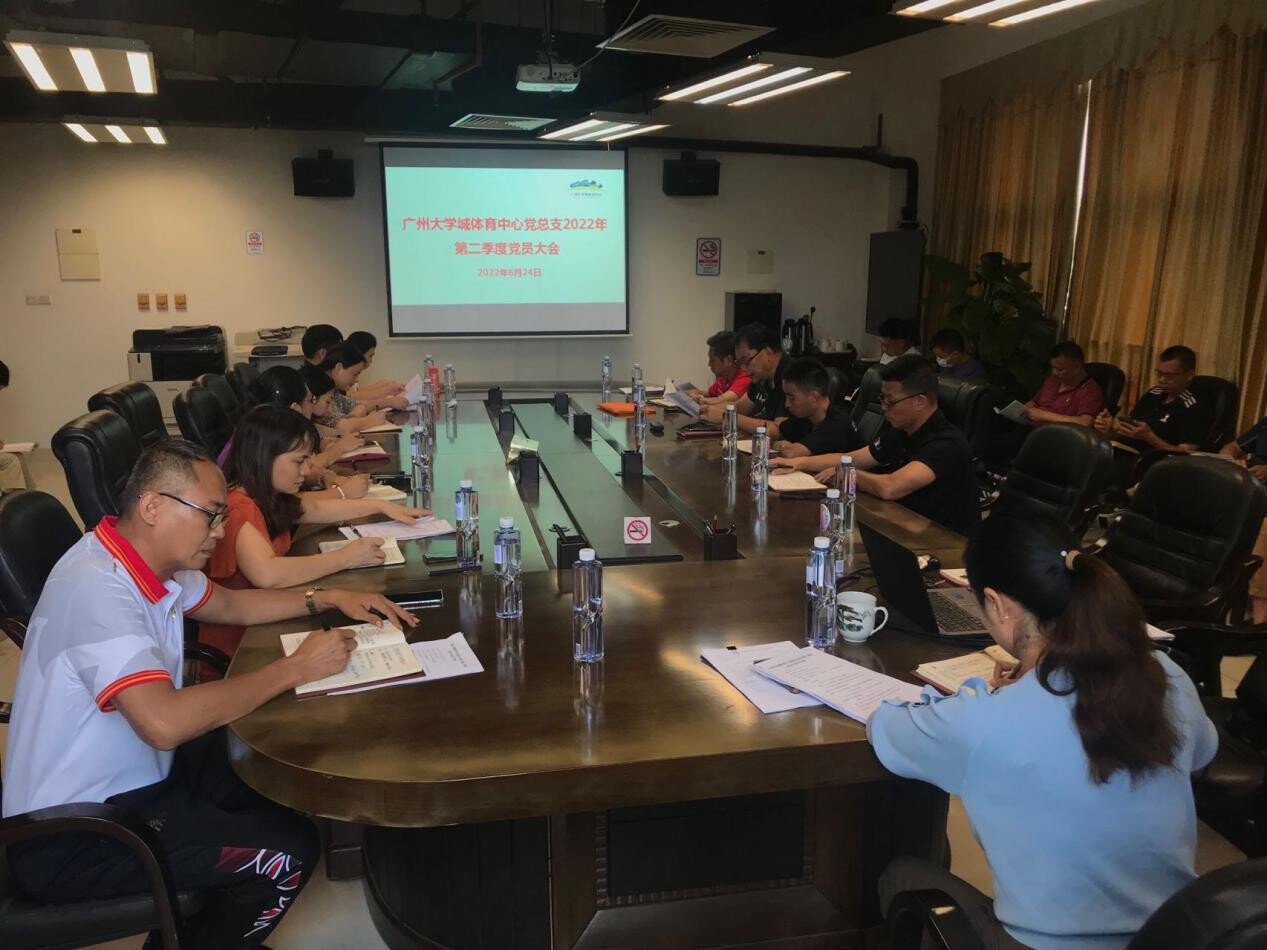 6月24日下午,广州大学城体育中心党总支在综合楼509室召开2022年第二季度党员大会。会议由中心党总支书记主持,中心全体在职党员、入党积极分子、入党申请人以及青年理论学习小组成员共33人参加学习。
