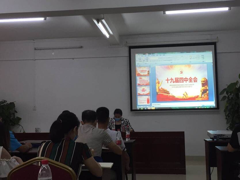 会议传达学习习近平总书记两会期间参加湖北代表团审议时的讲话精神、习近平总书记在山西考察时的讲话精神、《广州市委办公厅印发〈关于推进政治监督具体化常态化、做到“两个维护”的若干措施〉的通知》精神。中心党总支临时负责人李姝讲专题党课,解读党的十九届四中全会精神,结合推进国家治理体系和治理能力现代化建设,阐释我国在疫情防控中所展现的中国力量、中国精神、中国效率。