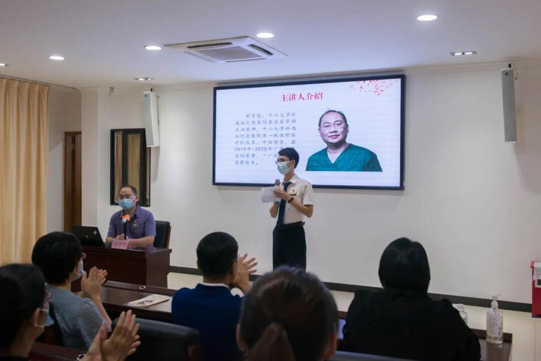 重温入党誓词后,我馆全体成员聆听了抗疫一线医生邹子俊主讲的党课。